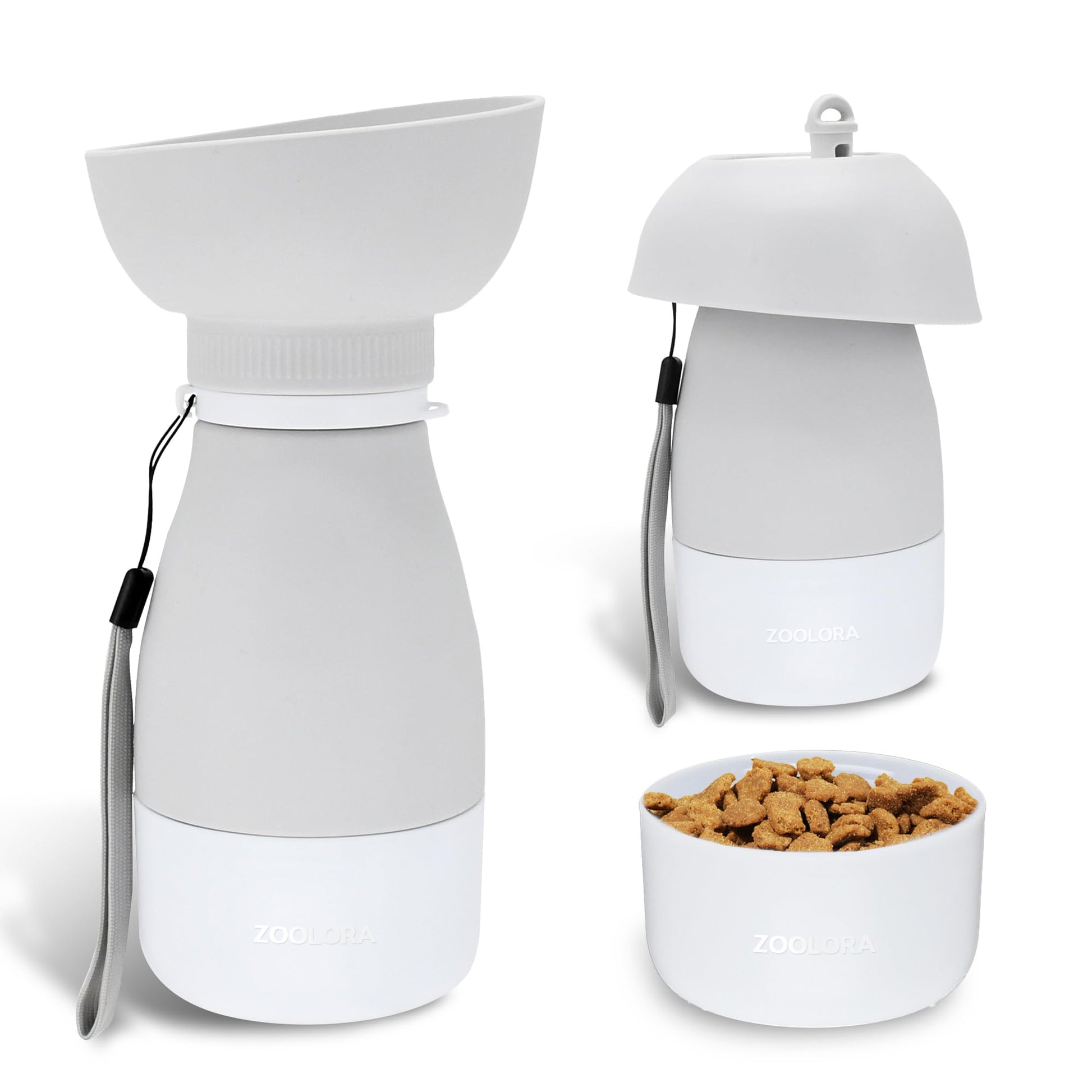 Zoolora Portable Pet Water Bottle with Food Container (Grey)
