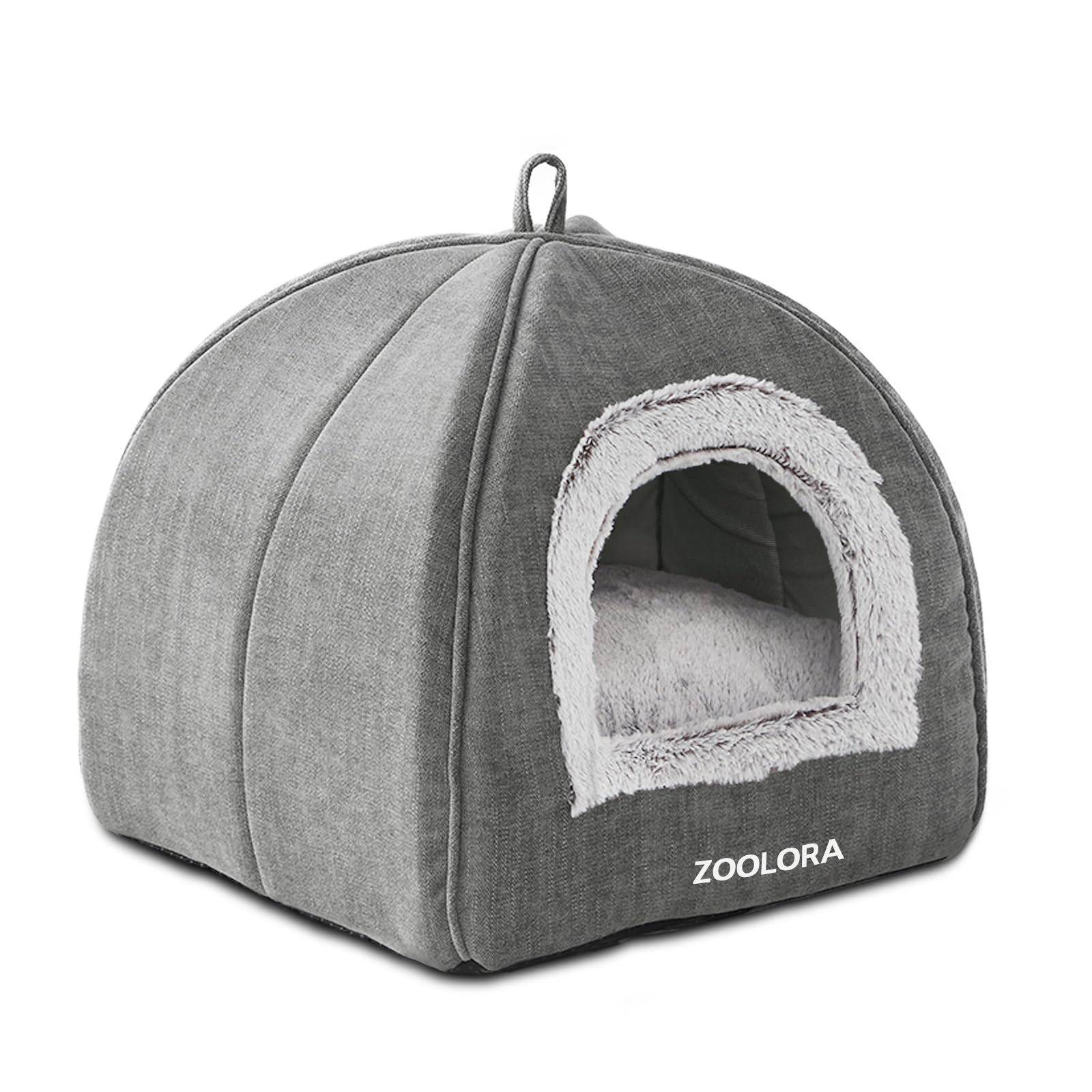 This **Zoolora Cat Bed Cave** provides a soft, warm, and secure house tent for indoor cats, kittens, and small pets. The entire structure is **foldable** for easy storage and travel. It features a **removable cushioned pad** for comfort and an **anti-slip bottom** for stability.